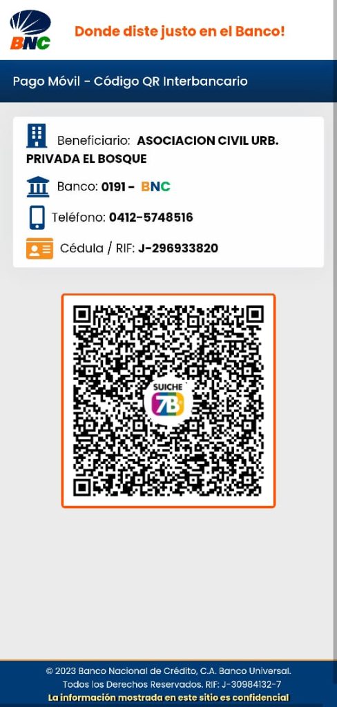 noviembre 10, 2023 | 1 comentario Información sobre la creación de la Cuenta Jurídica ASOBOSQUE de fecha 10 de Noviembre de 2023 Banco Nacional de Credito (BNC) ASOCIACIÓN CIVIL URBANIZACIÓN EL BOSQUE (ASOBOSQUE) BANCO NACIONAL DE CREDITO (BNC) 0191 0573 3021 0001 4025 RIF J-29693382-0 CUENTA CORRIENTE PAGOMÓVIL Cumplimiento de la Acción creación de Cuenta Jurídica ASOBOSQUE Avance al 11 de noviembre de 2023 de las acciones a corto plazo Junta Directiva ASOBOSQUE